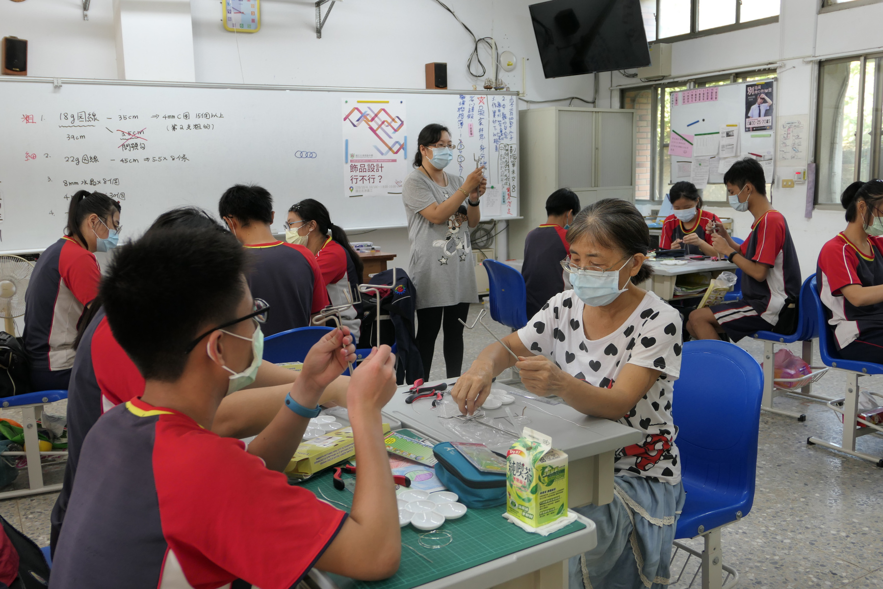- 活動內容:教導輕金工的初階入門,練習c圈、九針及問號鉤等基礎技巧,再透過解說色彩學配色,讓學生自行配色,創作自己心目中的手鍊。